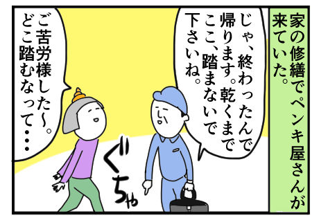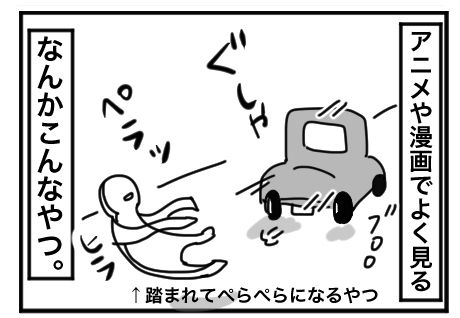 久々の来客やったし、じゃれたかった訳で。でも事故は事故なので、どこどこ〜?とかシャキッて走ったもんだから気づいた時にはもう踏んでましたよね。「おいおいおい」と目を見開いてこちらを見るおっさん、ぐにゅぅという足の感覚で全てを察知した女、それぞれの時間軸がま