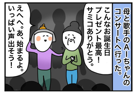 心の中で死ぬほどシャウトしてライブを盛り上げました。これぞまさにbody&soul母は大のAIちゃんファンで、多分涙を流していたのだけれど、なぜかわたしはそんな母を見れなくて、ついでに自分は母になったことがないので、ここで母が泣いている気持ちがわからないのが申し訳な