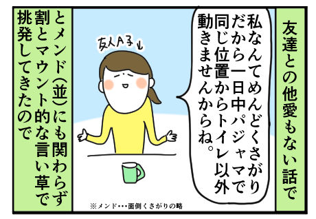 どうでもいい争いに命賭けるしょうもない女子達。まだイメトレだけなんですけど、そもそも足が上がらないのでこのチャレンジはイメージ倒れになると思うんですけど、当たり前のメンドを超級風に自慢してきたんでちょっと対抗心湧いてしまいましたよね(^-^)まったく、なんの戦
