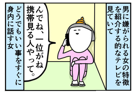 男性に嫌がられる女性の特徴ってもっとあるのではと考えた。 2018年05月01日 4コマ 誰しもがでは、という受話器越しのツッコミが気持ち良いサミコであった。布団はきついよね(^-^)****************************************************わたくしの座右の銘の一つに「せめて匂いは死守」というものがあり、なんとか守っていきたいお年頃なのであります。←おっ つづきを読む