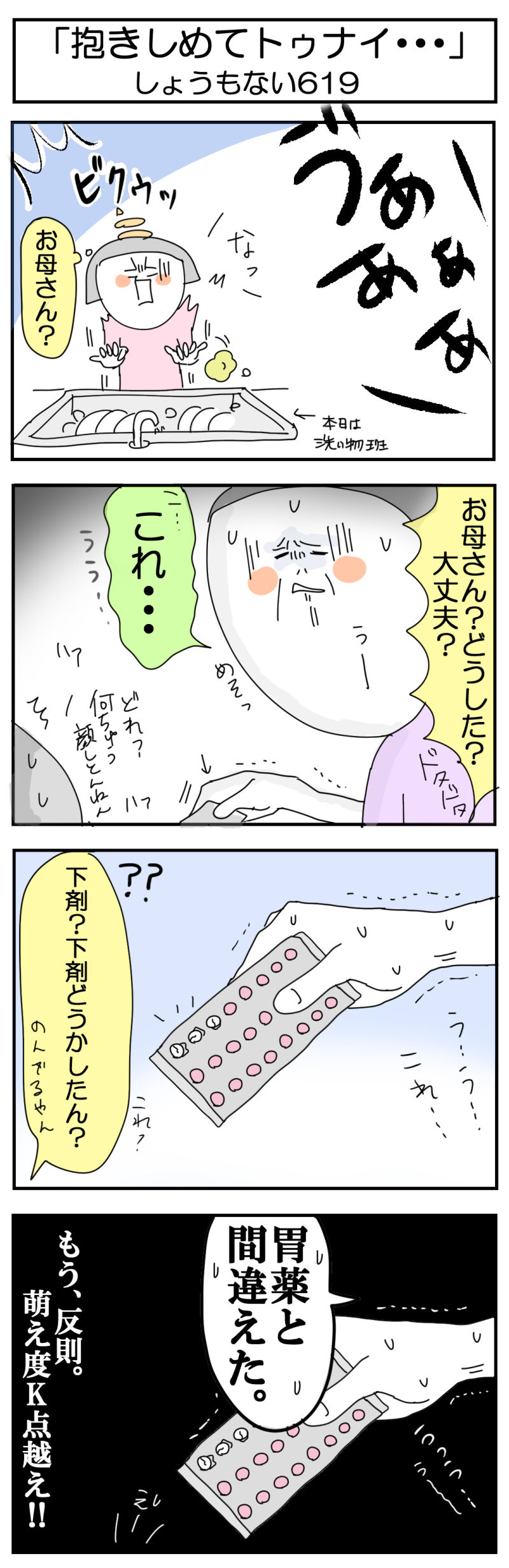 おはようございます。サミコです。いや~血は争えませんな~。サミさんは普段から快便なのでこの類の薬は本当に滅多な事が無いと飲みませんけども、もしわたしだったらやばかったな。普段から飲みなれている事と看護師でもある母ちゃんだったが故、事なきを得たからみんなは断然気を付けてね!プロミス!谷原さんばりに力んでプロミス!