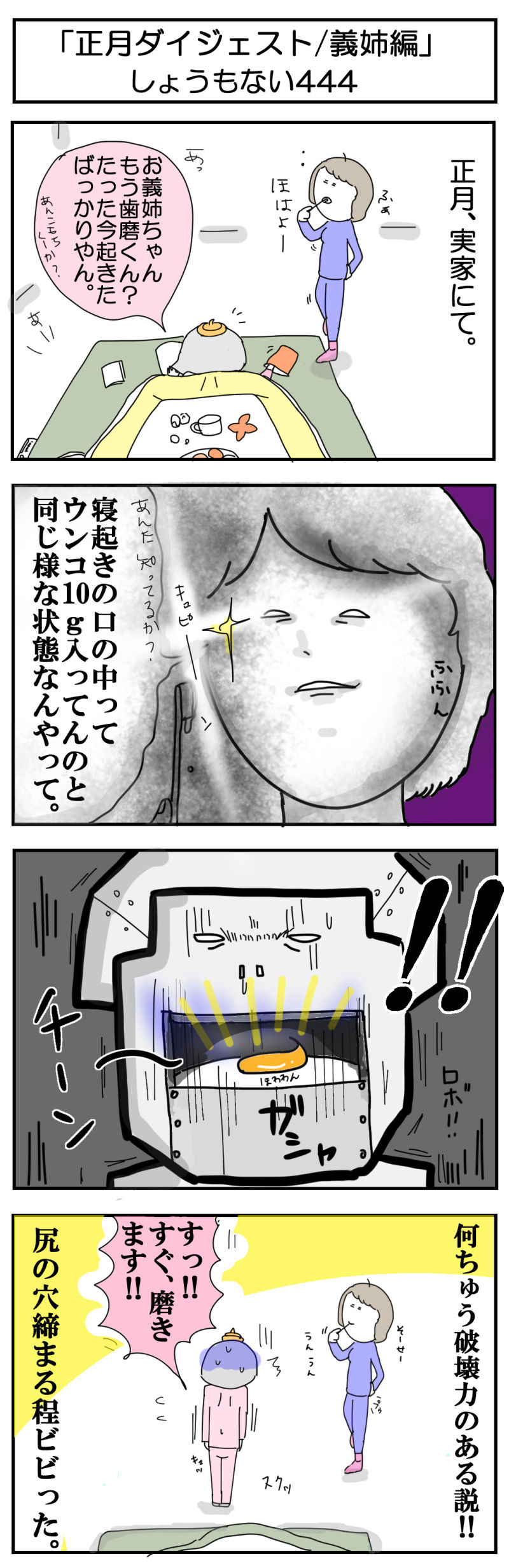 あぁ、3コマ目。最近常になぜか一番楽しく描ける3コマ目。あぁ、甥の為に妖怪ウォッチを勉強していてよかった。ロボニャンが居なければこの4コマは成立していなかったと言っても過言ではない。出られんケン。